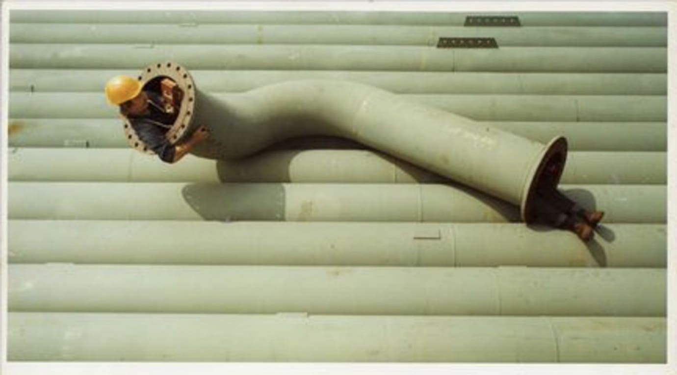 Een man komt zich aanmelden bij de portier naar aanleiding van een werkaanbieding “Boelwerf op zoekt kappers/slijpers.”